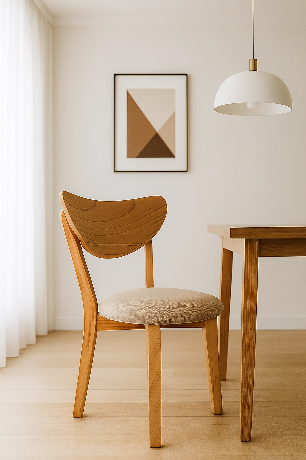 set mesa escandinava y 4 sillas escandinavas tapizadas de madera paraiso tela y colores a eleccion
